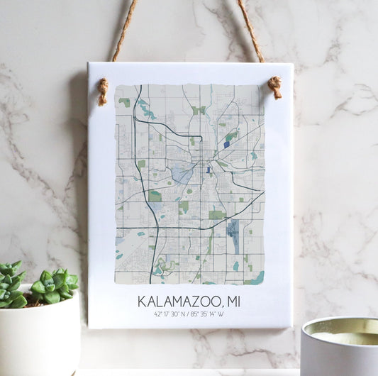 Kalamazoo MI Map Tile Sign - Map Art - City Map Michigan Souvenir - Rectangle