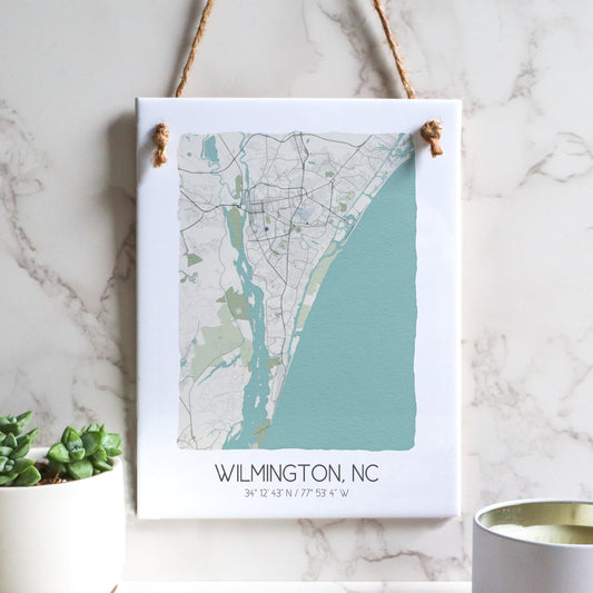 Wilmington NC Map Tile Sign - Map Art - City Map North Carolina Souvenir - Rectangle