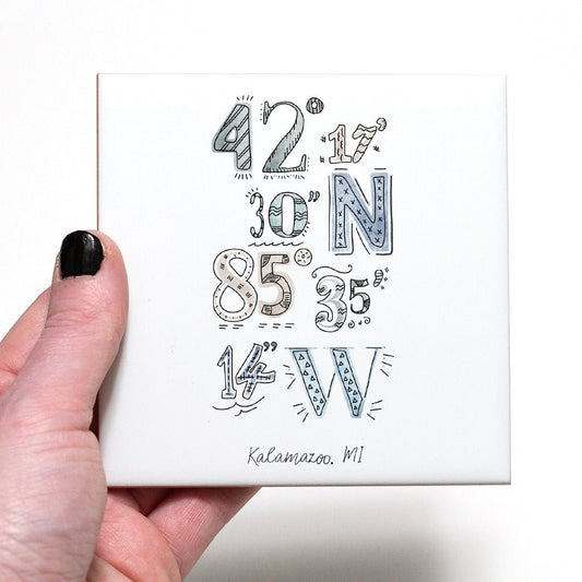 Kalamazoo MI City Art Coasters - Watercolor Coordinates - City Drawing Michigan Souvenir