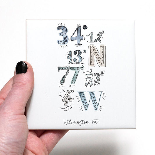 Wilmington NC City Art Coasters - Watercolor Coordinates - City Drawing North Carolina Souvenir (Set of 4)