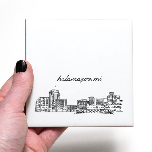 Kalamazoo MI Illustrated Art Coasters - Skyline Drawing - City Drawing Michigan Souvenir