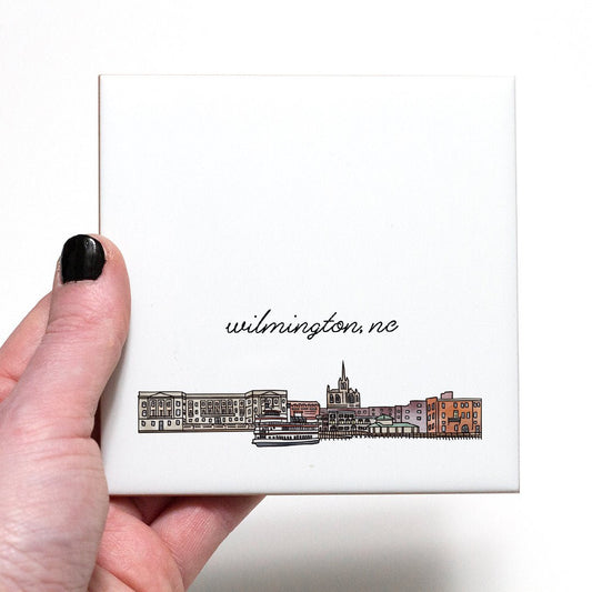 Wilmington NC Illustrated Art Coasters - Skyline Drawing - City Drawing North Carolina Souvenir (Set of 4)