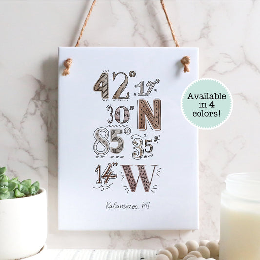 Kalamazoo MI City Art Tile Sign - Coordinates Drawing - Illustrated Art Michigan Souvenir - Rectangle