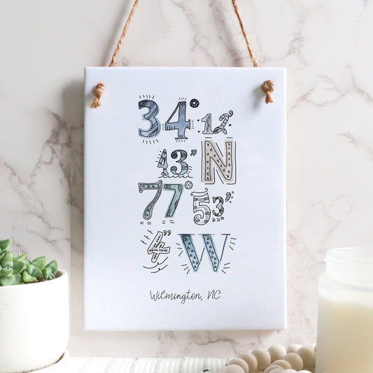 Wilmington NC City Art Tile Sign - Coordinates Drawing - Illustrated Art North Carolina Souvenir - Rectangle