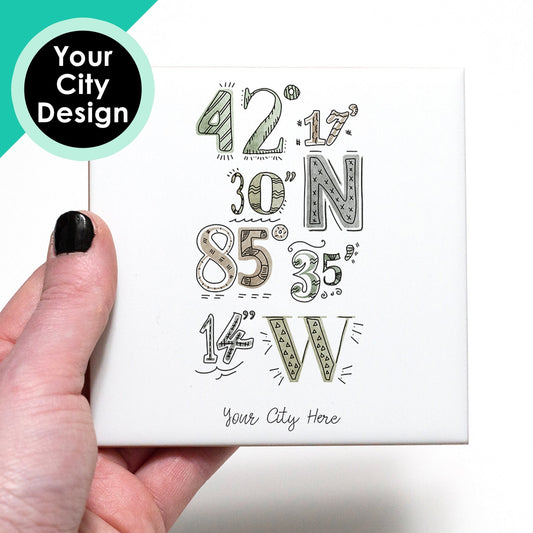 Custom City Art Coasters - Watercolor Coordinates Drawing For Your Hometown (Set of 4)