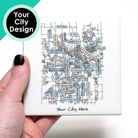 Custom City Map Coasters - Souvenir of Your Hometown (Set of 4)
