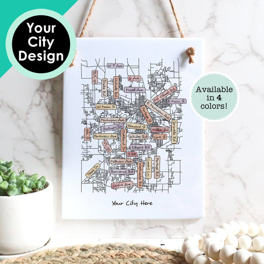 Custom City Map Tile Sign - Souvenir of Your Hometown - Rectangle