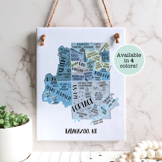 Kalamazoo MI Map Tile Sign - Tourist Map Art - City Map Michigan Souvenir - Rectangle