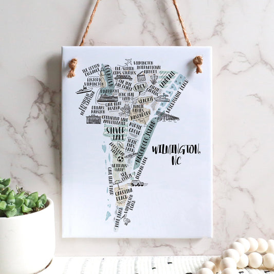 Wilmington NC Map Tile Sign - Tourist Map Art - City Map North Carolina Souvenir - Rectangle