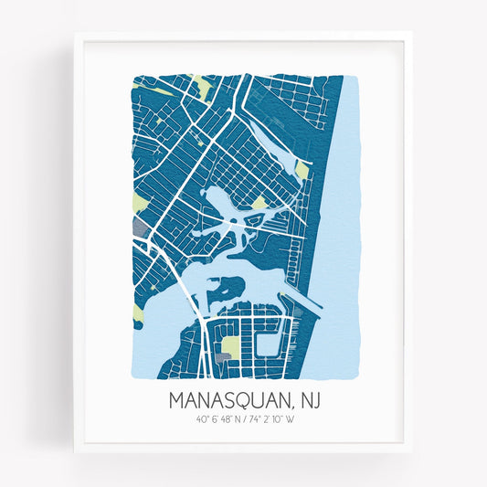 Manasquan NJ City Map Art Print - Hometown Map Poster - City Map New Jersey Souvenir