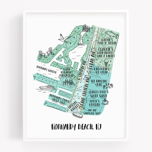 Normandy Beach NJ Map Print - Hand Drawn Map Poster - City Map New Jersey Souvenir