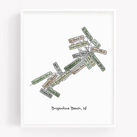 Brigantine Beach NJ Map Print - Street Map Poster - City Map New Jersey Souvenir