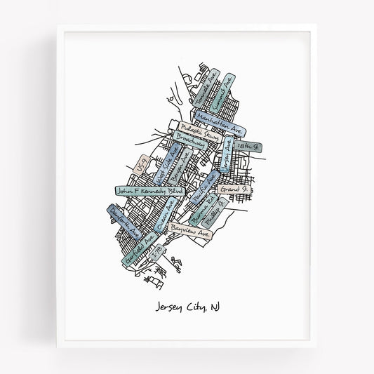 Jersey City NJ Map Print - Street Map Poster - City Map New Jersey Souvenir