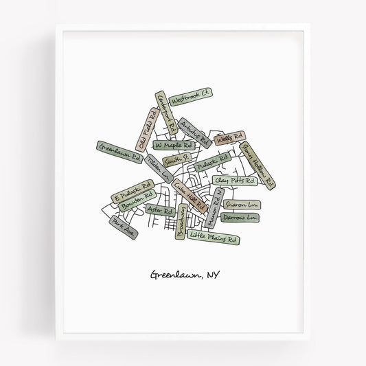 Greenlawn NY Map Print - Street Map Poster - City Map New York Souvenir