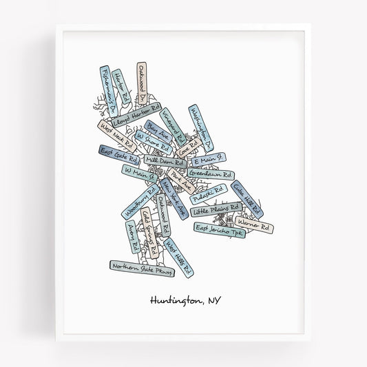 Huntington NY Map Print - Street Map Poster - City Map New York Souvenir