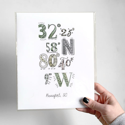Beaufort SC City Art Print - Watercolor Coordinates - City Drawing South Carolina Souvenir