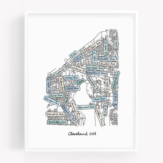 Cleveland OH Map Print - Street Map Poster - City Map Ohio Souvenir