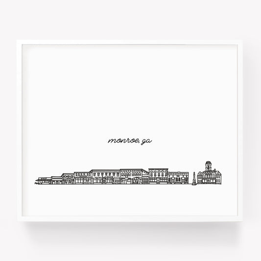 Monroe GA Illustrated Art Print - Skyline Drawing - City Drawing Georgia Souvenir