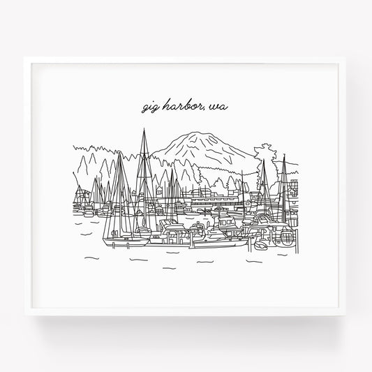 Gig Harbor WA Illustrated Art Print - Skyline Drawing - City Drawing Washington Souvenir