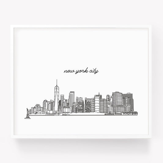 New York City NY Illustrated Art Print - Skyline Drawing - City Drawing New York Souvenir - Manhattan NYC