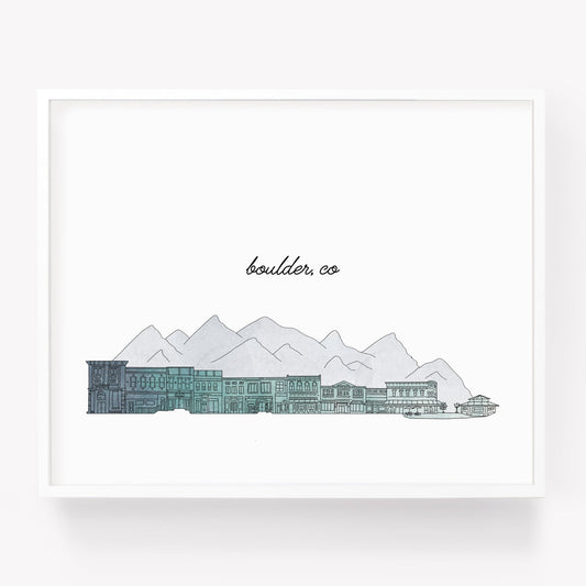 Boulder CO Illustrated Art Print - Skyline Drawing - City Drawing Colorado Souvenir
