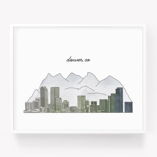Denver CO Illustrated Art Print - Skyline Drawing - City Drawing Colorado Souvenir