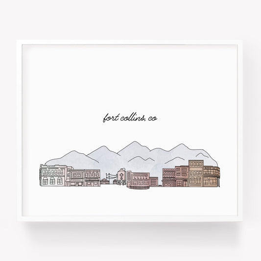 Fort Collins CO Illustrated Art Print - Skyline Drawing - City Drawing Colorado Souvenir