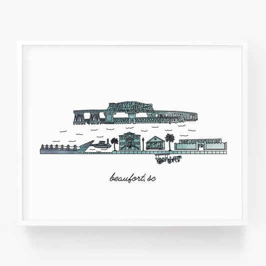 Beaufort SC Illustrated Art Print - Skyline Drawing - City Drawing South Carolina Souvenir