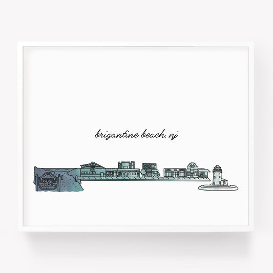 Brigantine Beach NJ Illustrated Art Print - Skyline Drawing - City Drawing New Jersey Souvenir
