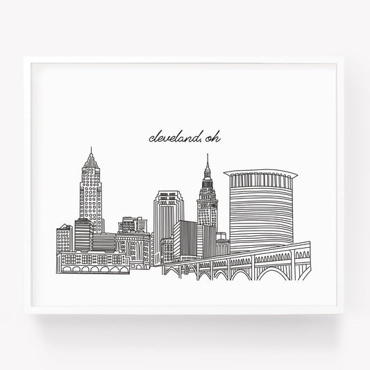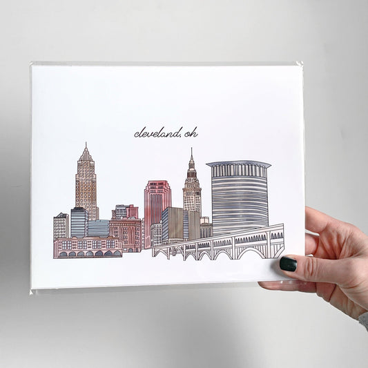 Cleveland OH Illustrated Art Print - Skyline Drawing - City Drawing Ohio Souvenir