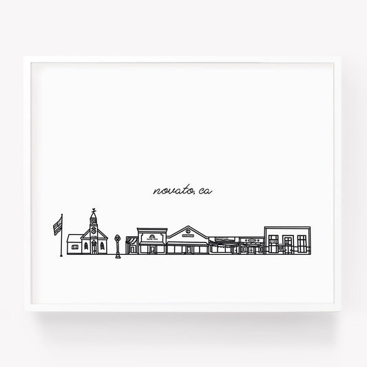 Downtown Novato CA Illustrated Art Print - Skyline Drawing - City Drawing California Souvenir