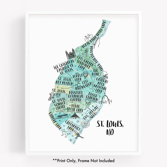 St. Louis MO Map Print - Hand Drawn Map Poster - City Map Missouri Souvenir