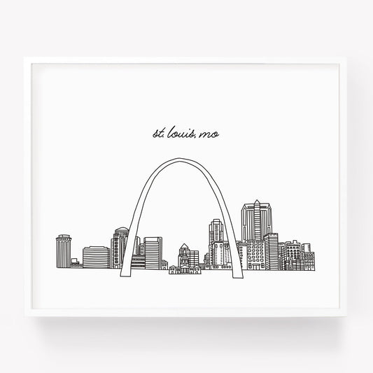 St. Louis MO Illustrated Art Print - Skyline Drawing - City Drawing Missouri Souvenir