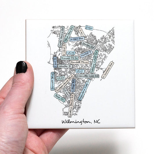 Wilmington NC Map Coasters - Street Map Art - City Map North Carolina Souvenir (Set of 4)