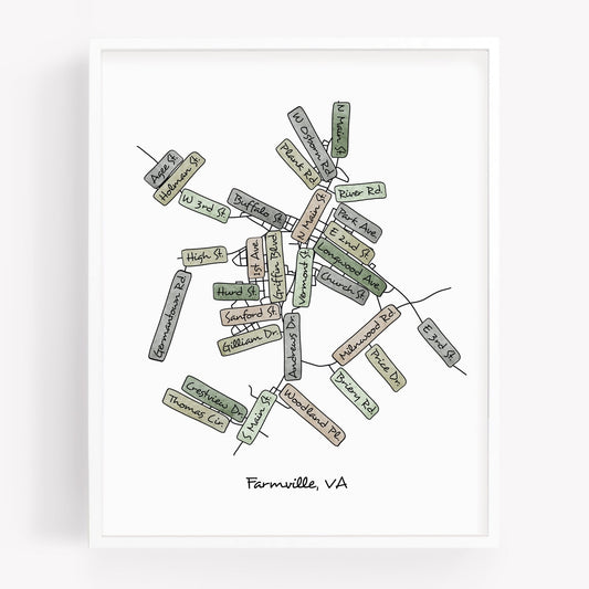 Farmville VA Map Print - Street Map Poster - City Map Virginia Souvenir