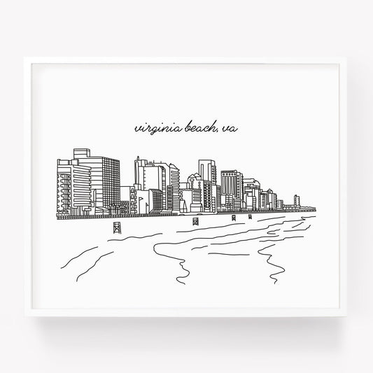 Virginia Beach VA Illustrated Art Print - Skyline Drawing - City Drawing Virginia Souvenir