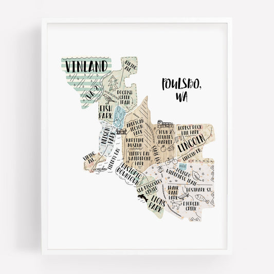 Poulsbo WA Map Print - Hand Drawn Map Poster - City Map Washington Souvenir