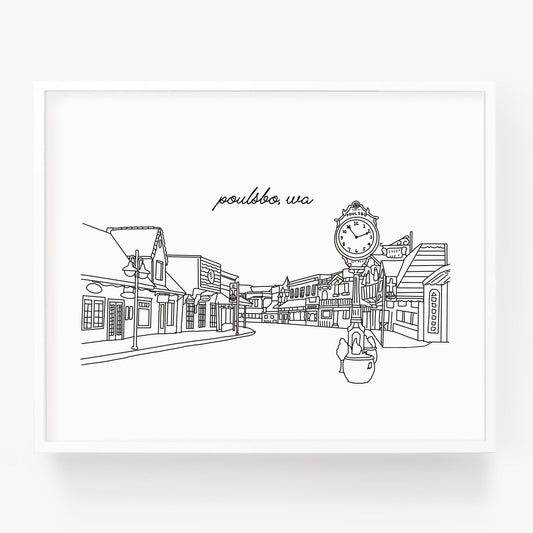 Poulsbo WA Illustrated Art Print - Skyline Drawing - City Drawing Washington Souvenir