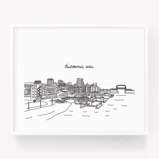 Tacoma WA Illustrated Art Print - Skyline Drawing - City Drawing Washington Souvenir