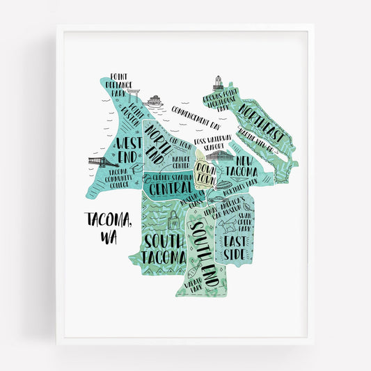 Tacoma WA Map Print - Hand Drawn Map Poster - City Map Washington Souvenir