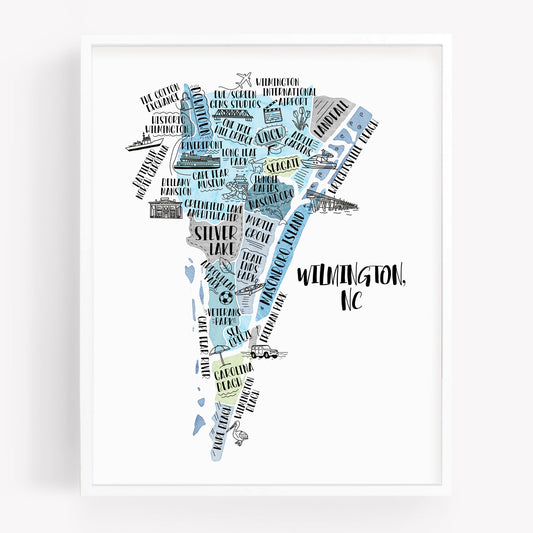 Wilmington NC Map Print - Hand Drawn Map Poster - City Map North Carolina Souvenir