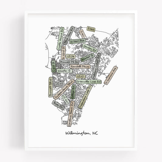 Wilmington NC City Map Art Print - Hometown Map Poster - City Map North Carolina Souvenir